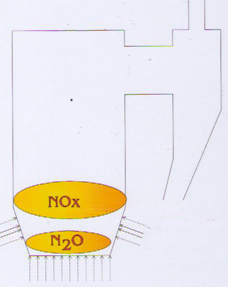 The ABC&I deNOx-technology is creating a chemical reaction taking the NOx away from the flue gas. The upper part of the free fire place volume in the boiler is used. This section is utilised as an internal "chemical reactor" volume for the deNOx -reaction. Reaction kinetics and efficiency is controlled by the ABC&I deNOx -technology. Used chemicals are nitrogen based.